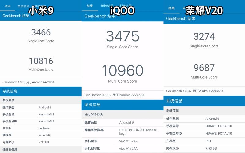 小米9、荣耀V20和iQOO手机区别对比评测: