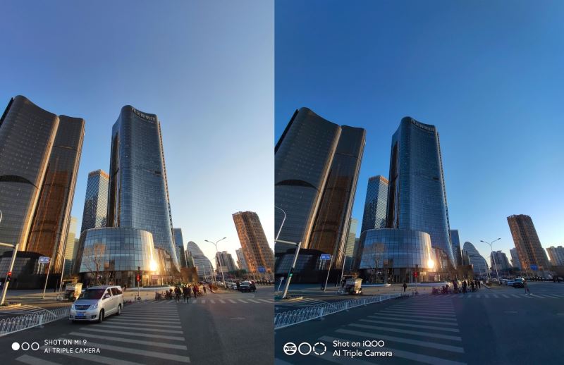 白天样张看不出来太大区别,iQOO的色温有点飘。