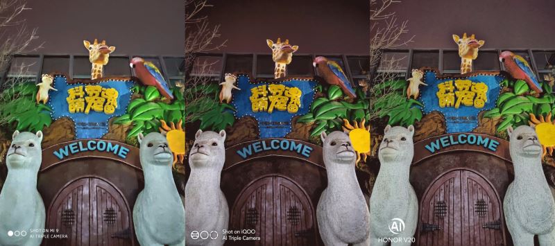小米9和荣耀V20都是“大底”传感器IMX586,iQOO主摄还是IMX363,不过这些都是纸面上的参数,我们来看实际样张对比表现。