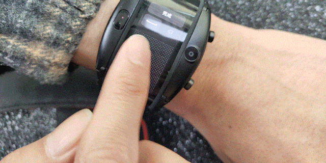 由于它的光线距离传感器在左侧,所以需要你的操作对应到左边区域,如果你将努比亚阿尔法腕机戴在右手会方便许多。