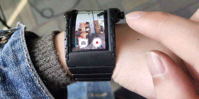 其实这个镜头也可以实现后置拍摄功能,你只需要拍照APP向下滑动,利用表侧的柔性屏,你就可以获取后置摄像景别。