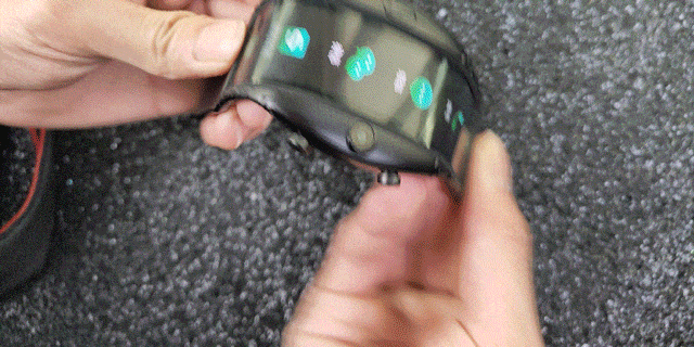 由于采用了柔性屏,因此努比亚阿尔法拥有更强的弯折性,你可以根据手腕带大小来自由调节表带。不过它的表带调节步骤要麻烦一点,因为它的表带由许多小节组成,上面有着卡扣,你需要根据需求取下相应小节。