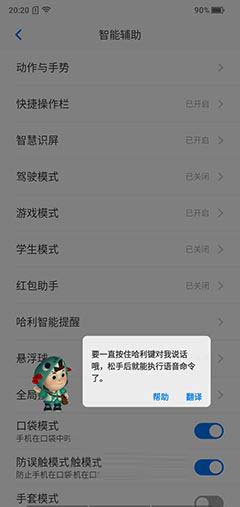 这枚按键还是智慧语音按键,通过长按开启。当长按开启后,从屏幕左侧会跳出吉祥物哈利,非常生动活泼,嗯。。。这个笔者可以玩一天。