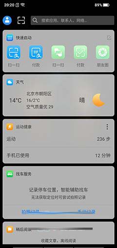 此外,海信手机金刚5还在桌面负一屏设置了智慧助理,集成了微信/支付宝扫一扫、付款、朋友圈、微博等一些常用的功能,还有运动记步、稍后阅读(结合前面智慧按键短按功能)、生活服务(手机充值、电影票、酒店等),还有新闻、视频、音乐等,功能方面还是非常全的。