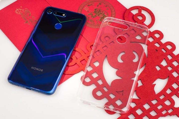 荣耀V20背面采用了V字纹理设计,在不同的光线和角度下将出呈现不同的颜色,多彩的颜色有种让我不舍得上保护套的冲动。
