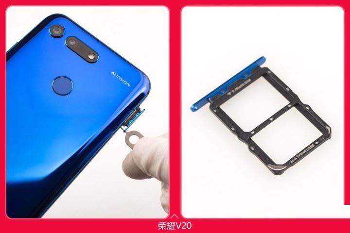 最先顶出SIM卡槽,荣耀V20采用的是双SIM卡槽设计,支持双4G支持全网通但是并不支持TF卡扩容。