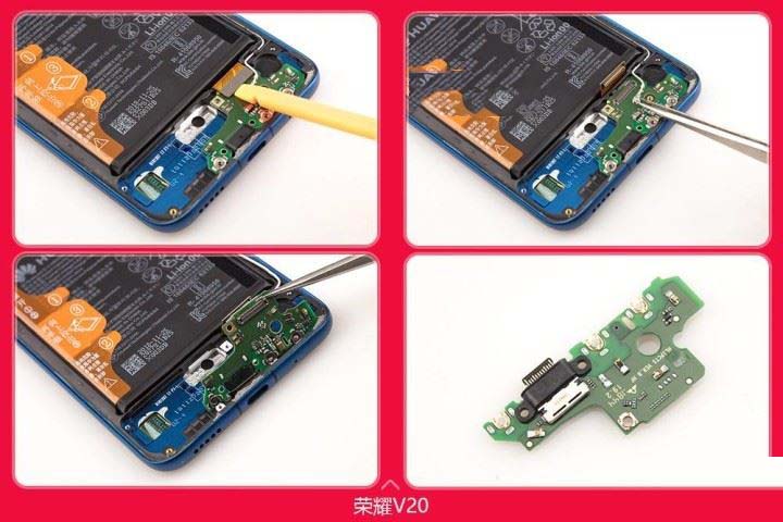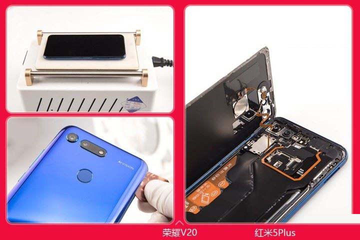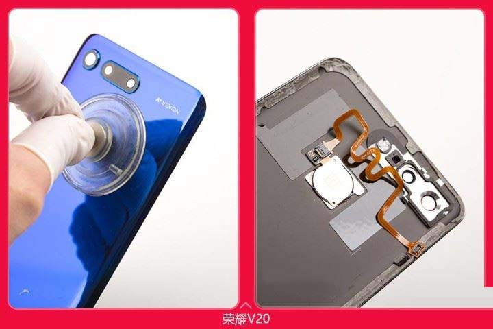 荣耀V20后盖是采用粘合的方式,先加热会比较好拆防止拆坏后盖。