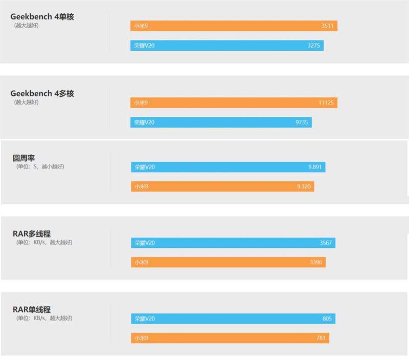 小米9和荣耀V20外观、参数、性能及续航评测: