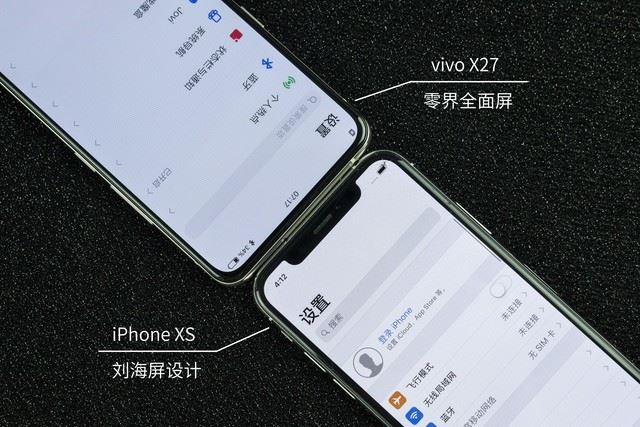 虽然iPhone XS采用的刘海屏设计引领了一波潮流,相比vivo X27的完美全面屏要逊色不少,在vivo探索屏幕指纹的时候,苹果依旧押宝Face ID的解锁方式,也是导致两款手机屏幕设计差异大的重要原因。