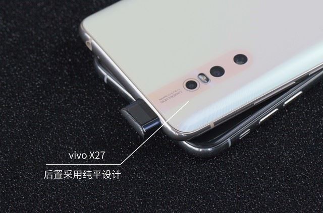 iPhone XS的后置双摄要略微的凸起,vivo X27的后置三摄采用了纯平的设计,机身的一体性更强,不过在机身的厚度上则要作出一些牺牲。