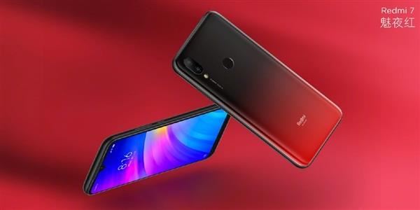 红米7目前有魅夜红、梦幻蓝、亮黑色等三种不同的配色款型,我们手中的是其魅夜红。