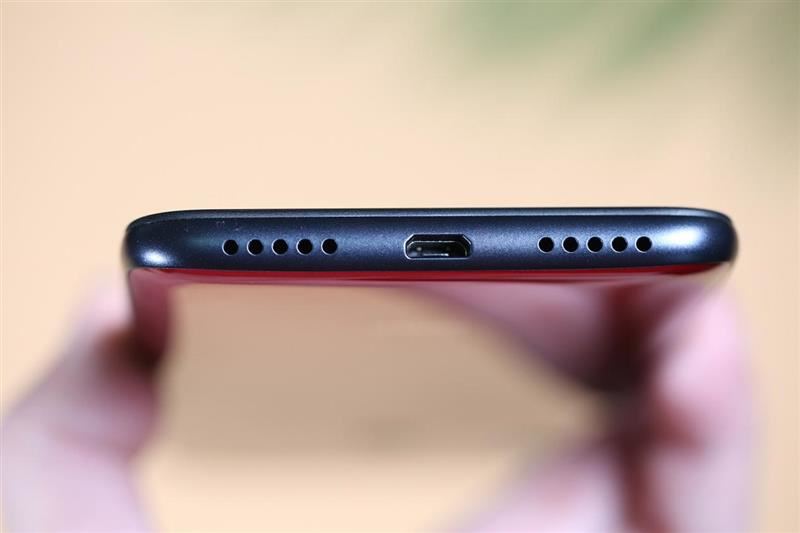 毕竟4000毫安时庞大容量的大电池加身,红米7的视觉上的厚度还是较为明显的,不过180克的重量算不上十分重。另外机身背部加入了弧形设计,握持起来并没有想象中那么厚重。