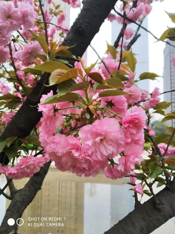 可以看到,在白天光线较为充足的条件下,红米7的拍照能够让人满意的。花瓣、叶子和大楼建筑,都能清晰的被记录和还原。