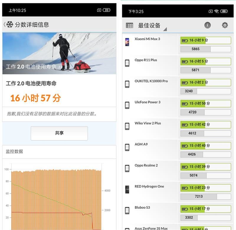 在PCMark 工作2.0测试中,红米7测得了16小时57分的电池使用寿命,这一成绩甚至超越了自家5500毫安时超大电池的长续航怪物小米Max3。足可以见其续航之强劲到了何种水平。