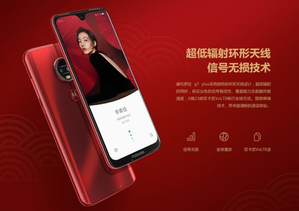 中国红、深海蓝两款配色深沉内敛,赋予摩托罗拉g7 plus更强的品质感、更加商务化。红色犹如红酒流动的感觉,拥有一种矿物能量的质感。蓝色更浓郁,同时有一些运动的效果, 坚实强韧,具有一种平衡的感觉。
