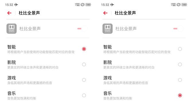 OPPO Reno 10倍变焦版内置了杜比全景声音效,分别针对电影、游戏、音乐进行适配。这个音效在外放状态下是默认开启的,配搭耳机时可以选择关闭。实际体验中,打开和关闭杜比全景声的差异还是相当明显的。开启全景声后,沉浸感会有大幅增强。