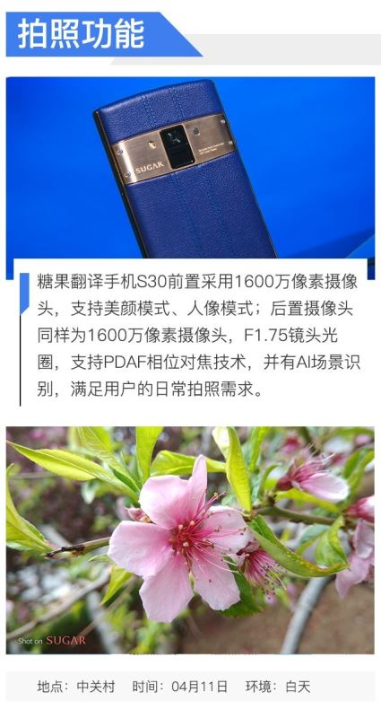 通过以上实拍样张可以看出,糖果翻译手机S30的前置和后置相机的拍照都有不错的表现,自拍的背景虚化处理准确,美颜人物面部细节保留完整,整体看起来非常的自然。