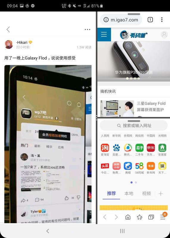 Fold 的屏幕尺寸和比例比较有利于多窗口浏览,更适合多窗口的浏览和分屏应用。