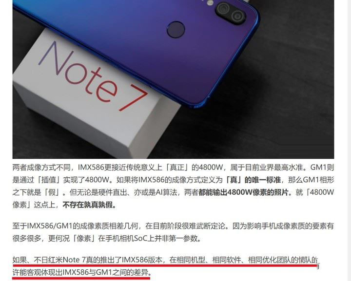 至于两者之间究竟存在多少差异,2个多月前Note7发布时就已经众说纷纭。个人在Note 7发售的第一时间入手一部,并写了一篇关于Note 7的稿子。文中对于GM1是不是「伪」4800W的个人看法。并期待「如果不日红米Note7真的推出IMX586版本,在相同机型、相同软件、相同优化团队的情况下,也许能客观体现出IMX586与GM1之间的差异」。