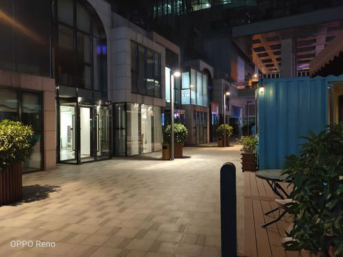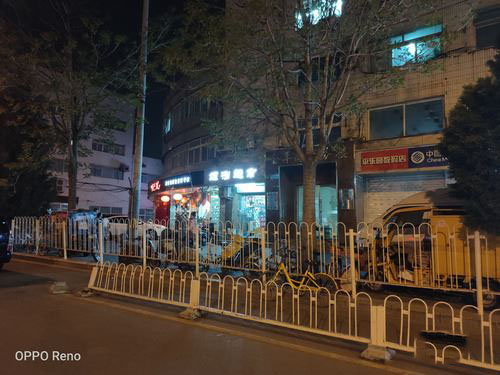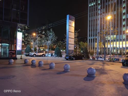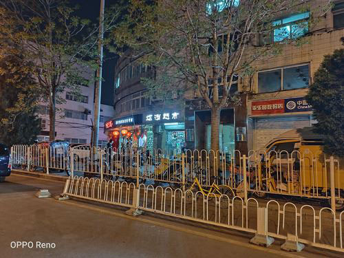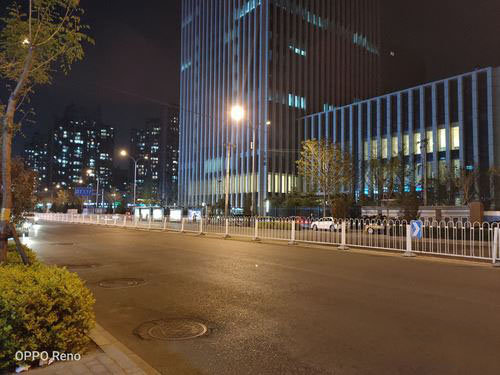 夜景下,得益于f/1.7的大光圈,所以Reno标准版在夜景和暗光下画面亮度还是很不错的,可以将所拍摄景物清晰的展现在画面中,而且1/2.0英寸感光面积加持下整体的噪点控制的也很到位,画面纯净度很高。而在开启夜景模式后,由于曝光时间更长,画面的亮度会进一步提升,而且多帧降噪的加入下,画面锐度很高,但是并没有给人后期合成的感觉,整体感觉还是很自然很不错的。