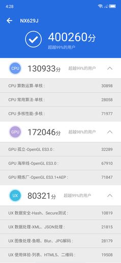 根据努比亚官方的说法,红魔3搭载了新一代的AI机器深度学习技术——ET进化张量技术。通过多项优化,可以充分发挥骁龙855的性能,让玩家获得更流畅的用户体验。通过实际测试来看,红魔3在安兔兔平台跑出了400260分的成绩,其中对于游戏体验影响较大的GPU方面也获得了172046分的成绩。而在GeekBench测试中,红魔3获得了单核心3522分、多核心10892分的成绩。在3DMark中,红魔3获得了5675的总分,性能表现令人满意。
