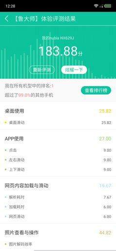 我们使用了鲁大师进行流畅度测试。经过实测,红魔3的流畅度名列前茅,分数高达183.88分,看来努比亚的确为这部手机做了许多努力。