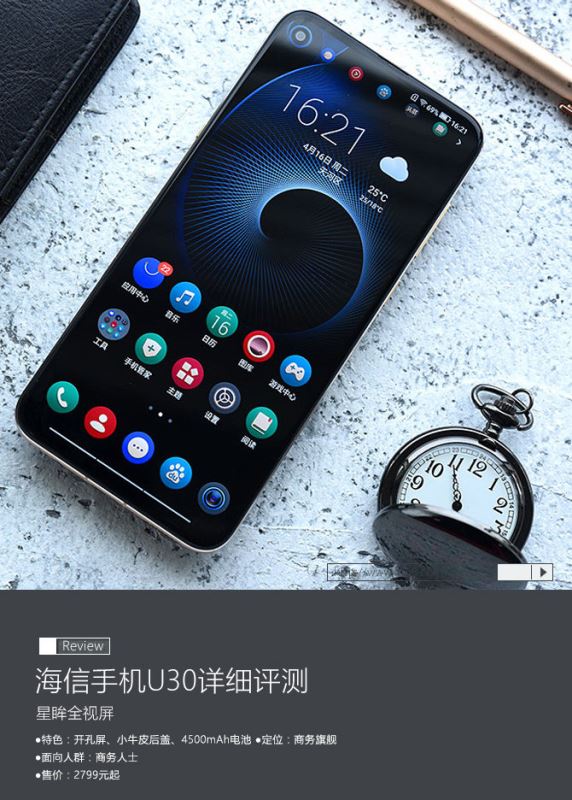海信手机U30采用的星眸全视屏是市面上少有的开孔屏,只有在高端旗舰手机的屏幕才有这种工艺。开孔屏也是目前全面屏解决前置摄像头的一个比较好的方案,在屏幕正面通过开孔安装摄像头,让前置摄像头占用屏幕最少的位置。