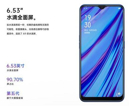 外观方面,OPPO A9采用6.53英寸水滴屏,屏占比高达90.7%,屏幕材质采用的是康宁大大猩猩玻璃,外观方面来看,继承了OPPO的优秀基因,整体观感很漂亮的说。
