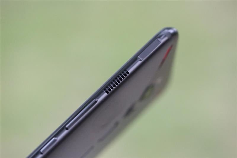 下巴细节,出于电竞手游时握持机身减少误触,努比亚将红魔3的下巴宽度削减得有所保留。