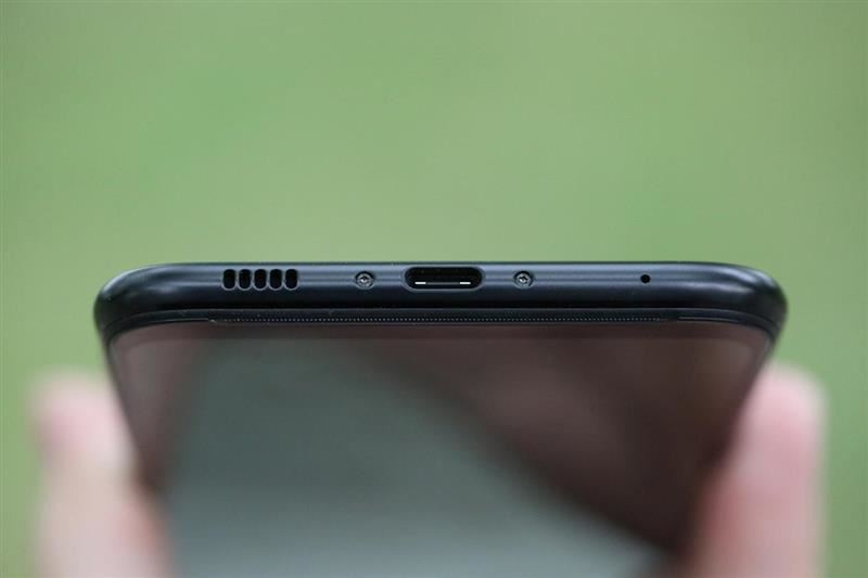 额头细节,未采用当下流行的刘海、水滴、打孔等异形屏,为了照顾到手游玩家的需要,其在这块19.5:9 比例的大屏上保留边框来提升握持体验。这样也得以加持上下共生的双NXP Smart PA 单元扬声器设计。