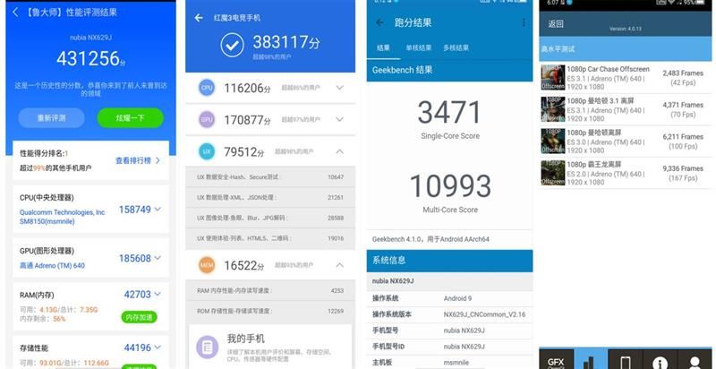 Geekbench单核分数3471分,多核10993分,属于骁龙855机型顶级旗舰的水准。在鲁大师中得分有接近44万分,直接跃居榜首成为当前的第一名。