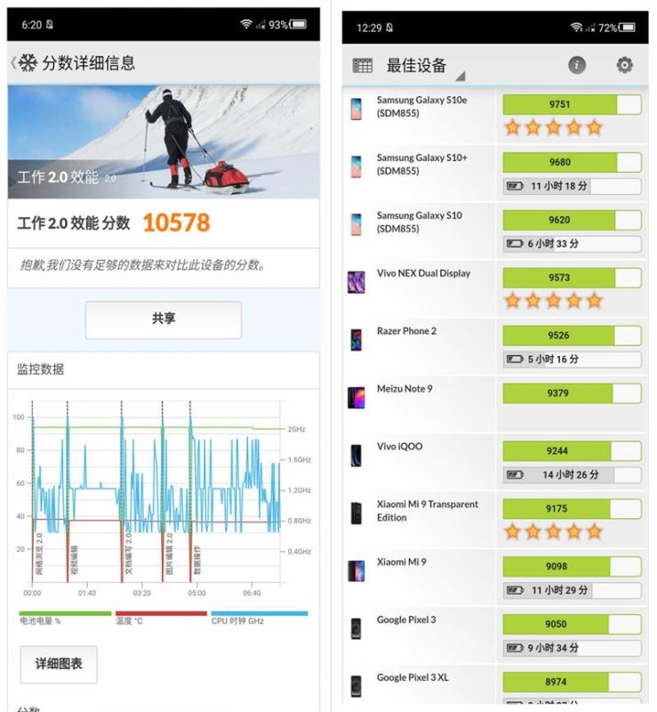需要注意的是PCMark的跑分偏向能耗比,也就是功耗与性能更均衡的手机得分越高。