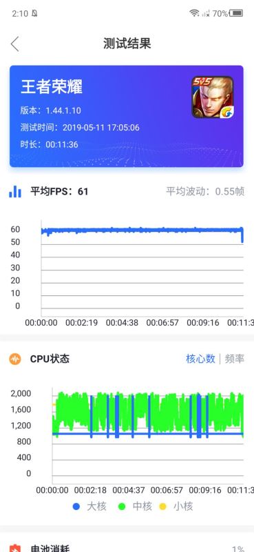 可以看到,红魔3的表现非常稳定,画面帧数一直维持在61帧上下,只有0.55帧的微小波动。