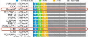 相反,身为骁龙855的顶级旗舰机OPPO Reno10倍变焦版展现出来的续航能力让人有点眼前一亮的感觉,毕竟在所有骁龙855高端旗舰机型当中,OPPO将自家的产品打造成了业内顶尖的水准。可以看到,OPPO Reno 10倍变焦版的续航能力与拥有4200mAh的华为P30 Pro打成平手,甚至连配备了5000mAh大电池的红魔3都排在其后,可见Reno 10倍变焦版的续航能力的确很好。