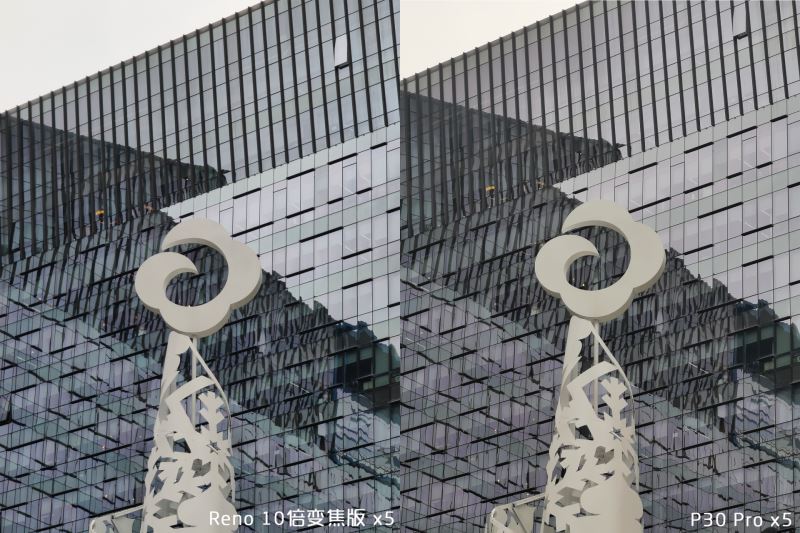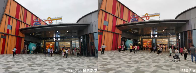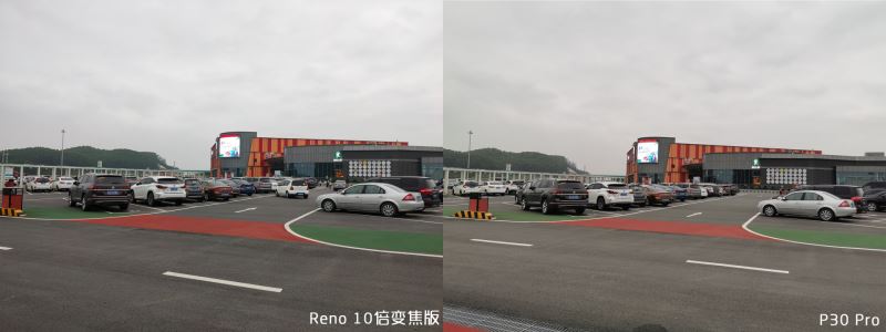 Reno 10 倍变焦版和 P30 Pro 都很好地还原了当天阴雨天的场景,曝光倾向接近,成像质量也接近。