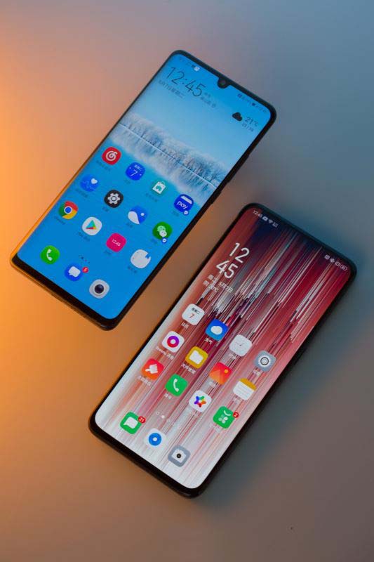 Reno 10 倍变焦版和 P30 Pro 在外观上的区别显而易见。Reno 10 倍变焦版的前面板整洁无开孔,看上去非常舒服,一体感很强,其中一大原因是它首创了侧旋升降结构,该模块将前置摄像头、听筒、前置柔光灯、后置补光灯都集成在了一起,所以当点亮屏幕时,你看到的,就是一块屏幕,干净,利落。