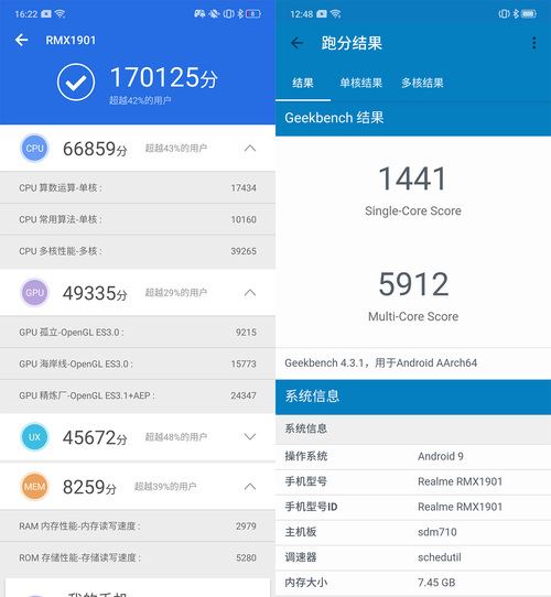 所以来看看跑分,安兔兔170125分,Geekbench单核1441分,多核5912分,放在2019年也着实不算弱。