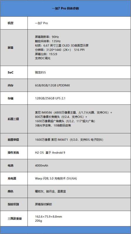 在期待当中,一加7系列发布,其中的一加7 Pro便是虎哥预热许久的“机皇”担当——骁龙855处理器连带国内首发的UFS3.0,后置三摄,升降式曲面设计,4000mAh电池,30W WARP快充,拥有1亿人民币定制的高达90Hz的刷新率2K分辨率曲面屏幕。