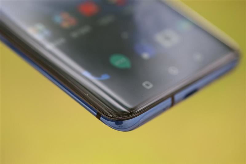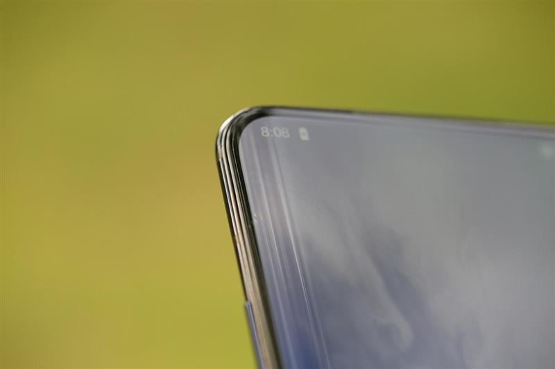 来看细节,一加7 Pro的3D曲面玻璃与中框衔接过渡顺滑,这是正面。