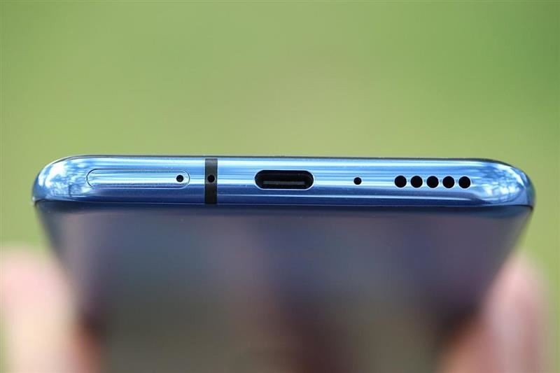 刚刚我们已经在额头处看到了一组扬声器,结合机身底部的扬声器共同形成立体声双扬声器的配置。充电插孔毫无意外的是Type-C电源插孔。