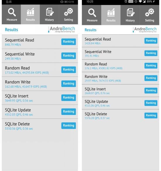 我们接下来使用Androbench进行一个简单的对比测试。AndroBench是一个基准测试应用,可以测量Android设备的4K随即存储·存储性能,包括内部或外部存储。