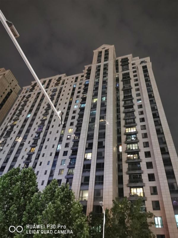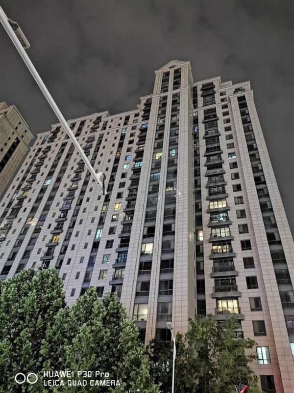 在有路灯为光源的夜间环境当中,华为P30 Pro成像追求极致的线条锐利,与此同时色彩偏白发冷,丢失部分色彩细节。