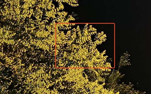 放大后细节涂抹感不严重,每片树叶的轮廓还清晰可见