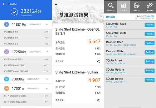 本次的红魔3搭载了骁龙855平台,战地迷彩和红蓝竞技两种配色拥有最高12GB RAM+256GB ROM配置,安兔兔、3D Mark和AndroBench跑分在同级中都比较突出,性能方面丝毫不用担心。
