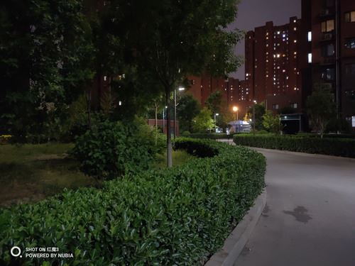 虽然是以拍摄星星出名的,但因为没有类似超级夜景的专项夜景模式,努比亚手机如今在夜景拍照方面是略有吃亏的。从红魔3的夜景样张可以看到,在夜晚10点半,红魔3依然能拍出整体观感不错的照片,画面亮度表现也合格,但暗部和细节部分的涂抹痕迹就比较重了,细节有所丢失。