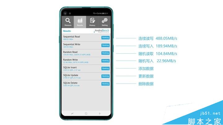 AndroBench是一款基准测试App,可以衡量Android设备的存储性能。AndroBench提供两种方式,第一种可以快速与其他设备的存储进行比较。第二种SQLite可以查询数据库表。在AndroBench测试中,三星Galaxy A8s的连续读取速度488.05MB/s,连续写入速度189.94MB/s,4K随机读取速度104.84MB/s,4K随机写入速度22.96MB/s。