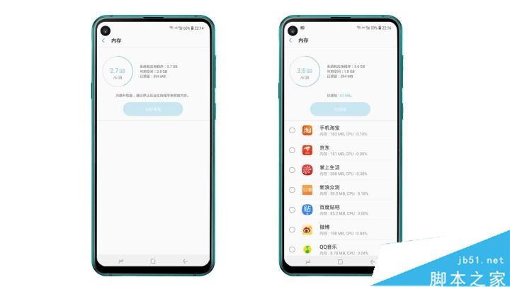 手机运存越大越好吗?我们来看上面两组图,空闲状态下,内存占用2.7GB,占用率约45%;打开12个App以后,内存占用3.6GB,占用率约60%,在后台滑动比较顺畅,基本不会出现卡顿现象。因此,手机运存的确是越大越好,它直接影响了App页面的加载速度、多App的启动速度、应用的后台切换速度等。