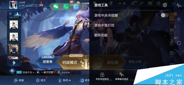 在游戏中下拉菜单会在右侧出现一个工具栏,右下角就是游戏工具,其功能基本就是对游戏过程中的信息提醒、误触按键进行了优化。比如游戏中关闭提醒、游戏中免打扰、锁定导航、录像等。在游戏工具界面的左侧有一个App导航,在游戏中可以单独打开一个窗口浏览App内容。