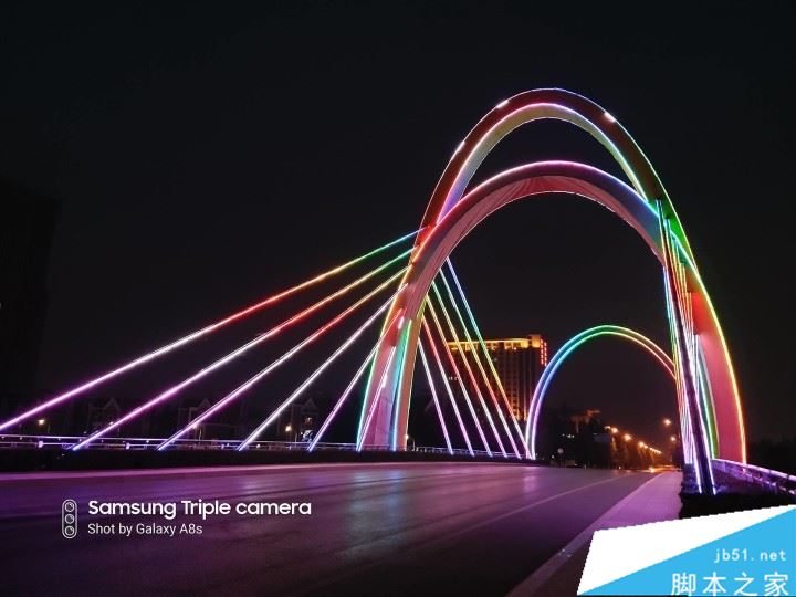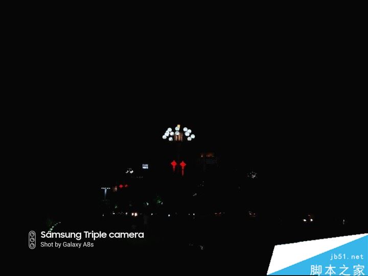 如果在夜晚拍灯的时候把焦点放在灯上,三星Galaxy A8s对灯光的把握非常出色,但也基本舍弃了所有的焦外暗部。成像效果别有一番风味。