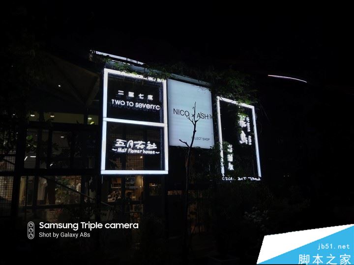 三星Galaxy A8s没有超级夜景的拍照模式,普通模式下,对亮部灯光的控制令人满意,把高光部分合理压制,没有明显的过曝现象,对暗部的细节也做了尽可能的保留,涂抹感在能接受的范围之内。